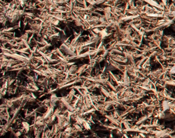 - This mulch is run through a grinder twice to ensure texture consistency. This mulch is a favorite for its native look and its usefulness in natural areas, walkways, and roads. The color has red and brown tones in it and is a long-lasting option for your landscape.