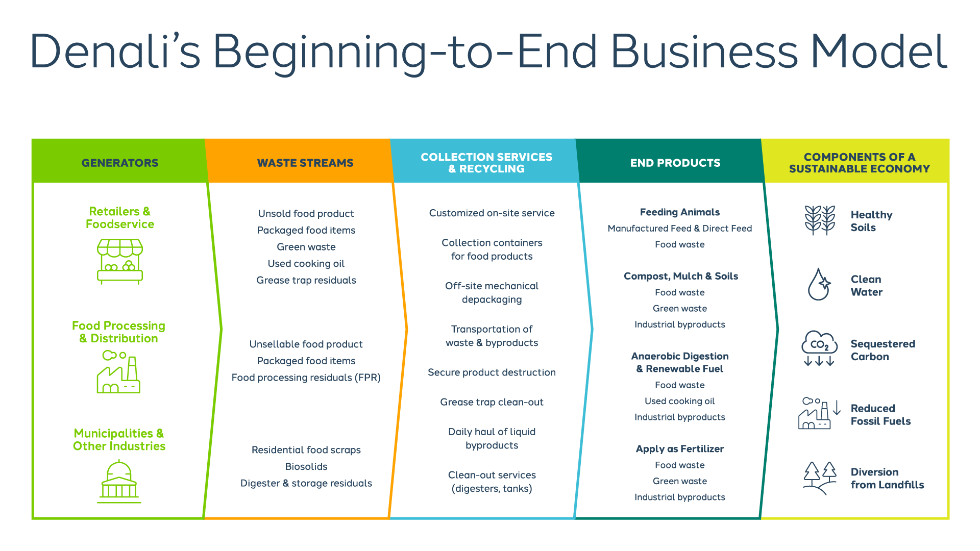 By providing the opportunity to handle unconsumable food sustainably, the recycling process benefits farmers, food businesses, and the local economy. It also offers a “rising tide lifts all boats” approach, benefitting communities, businesses, and the environment. And while setting up a circular food system may feel challenging, it doesn’t have to be. When you partner with Denali, you get an end-to-end food recycling partner that has all the facilities and technologies in place to help your business win. Start implementing these sustainable practices today by contacting our team of experts!