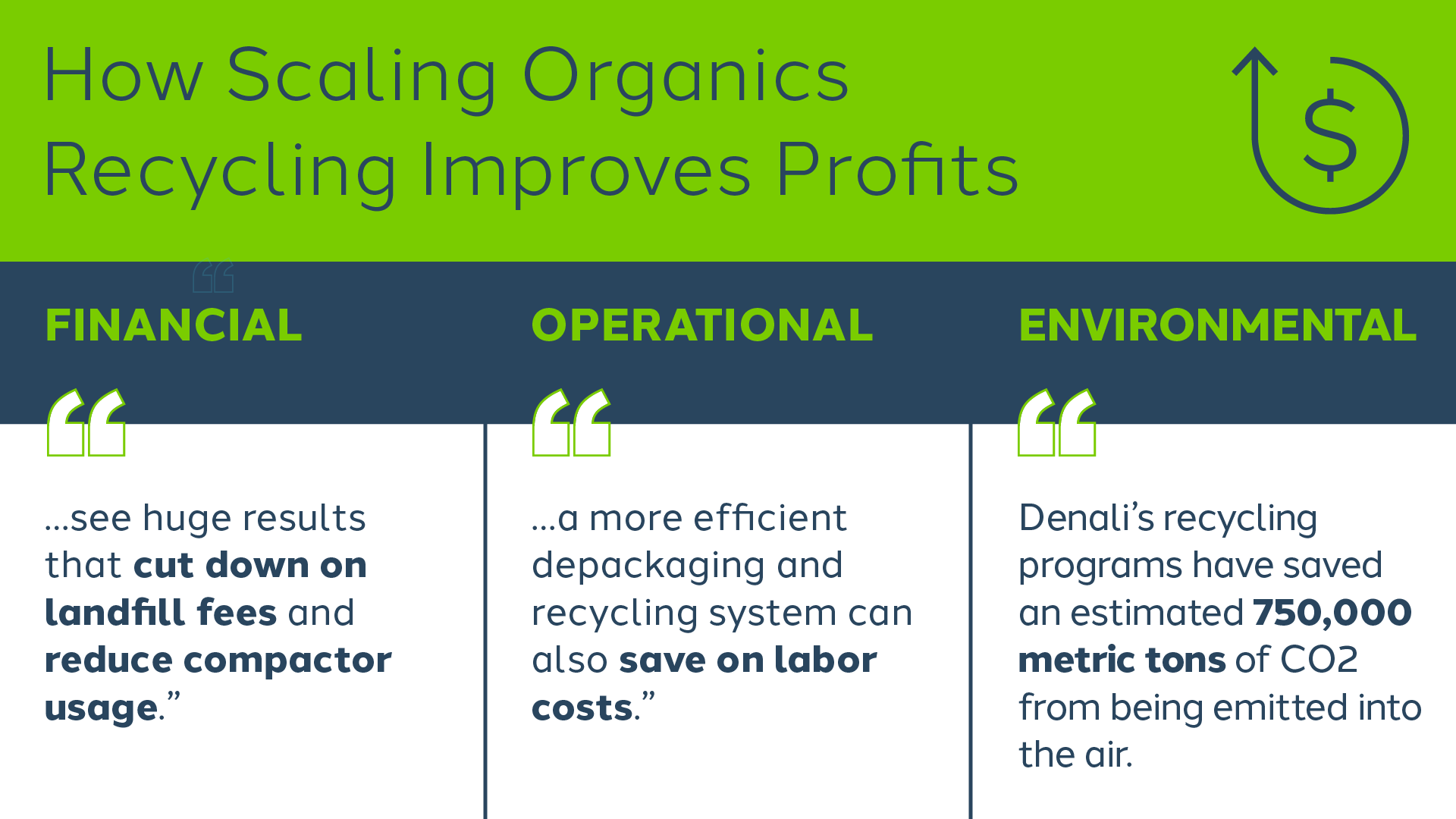 Businesses often explore ways to recycle more organic materials, yet many struggle with the fragmented nature of the system. Denali solves this problem by offering an end-to-end solution that includes collection, depackaging, and recycling across 48 states and Puerto Rico.