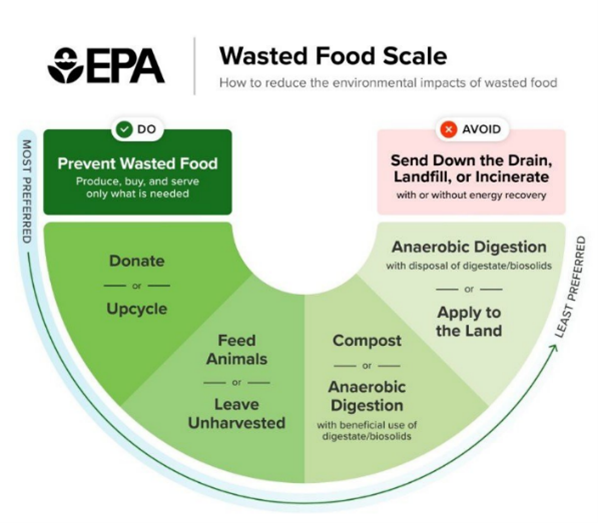 By Kate WorleyU.S. EPA Releases New “Wasted Food Scale”In October 2023, the U.S. Environmental Protection Agency released a new guide to managing food waste called the “Wasted Food Scale.” This replaces the “Food Recovery Hierarchy” released in the 1990s. Although many of the pathways to manage food are the same, the new Wasted Food Scale has additional food waste management pathways – or ways to manage food waste - to guide decision making.